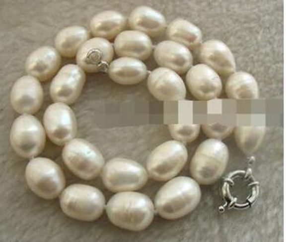 freshwater pearl white 10-11mm necklace 17" wholesale nature beads gift, Silver