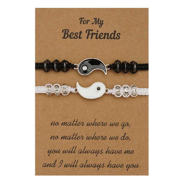 friends card bracelet yin and yang gossip woven bracelet 2-piece set, Golden;silver