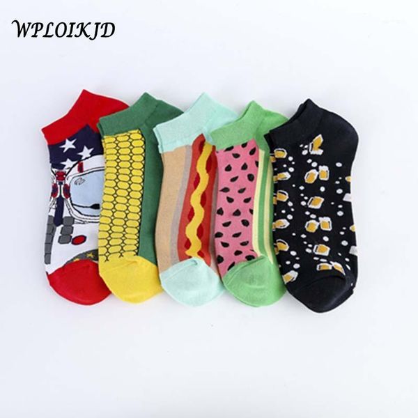 funny amkle socks men creative character watermelon spacemen noodle dog cloud astronaut pattern crew socks hip hop sokken1, Black