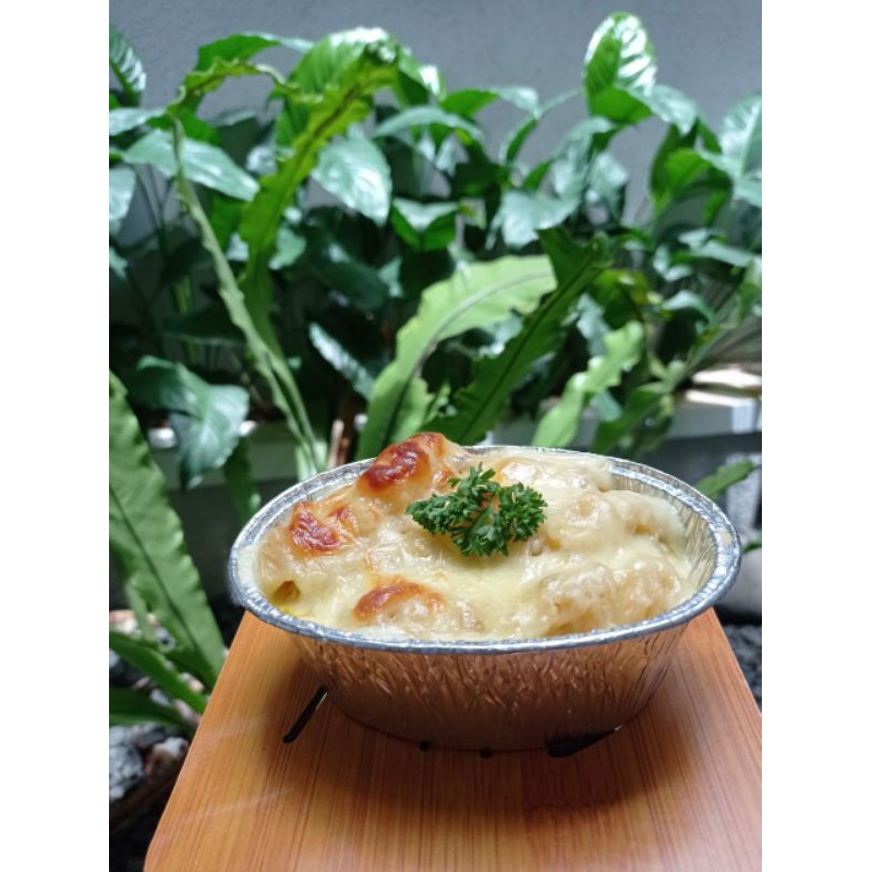 Bermula dari mac n cheese yg dibuat lebih variatif menggunakan fusilli agar lebih mengenyangkan dengan topping jamur champignon yang diselimuti dengan saus keju yg super meleleh dan ditutup dengan mozarella. disajikan fresh dari oven dibuat dihari yg sama dengan pengiriman. namun pembuatan akan dilakukan secara PO kecuali pembelian > 3 cup. 1 cup mempunyai berat 250 gr sehingga cukup mengenyangkan.