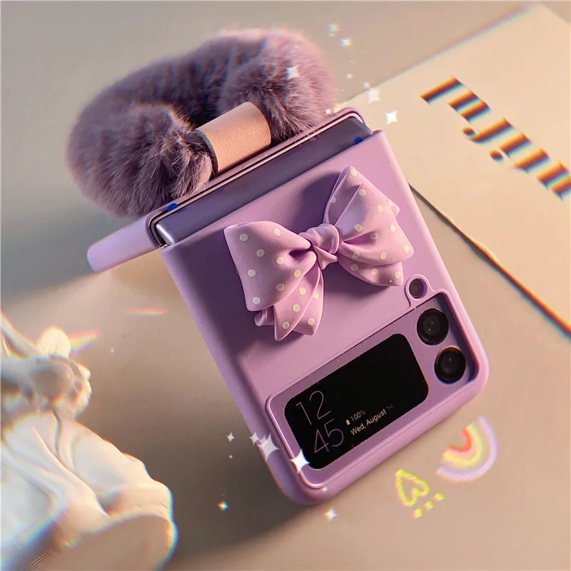 For Samsung ZFlip3 Case Plush Phone Case for Samsung ZFlip 3 Conque Female F7110 Folding Screen Lanyard Lavender Purple Z Flip3