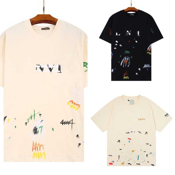 gal lavin mens designer t shirt casual man womens tees hand-painted ink splash graffiti letters loose short-sleeved round neck clothes cje2, White;black