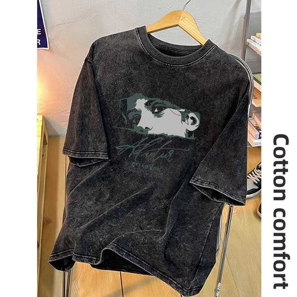 galleries old washed short sleeved t-shirt for men and women's summer ins trendy brand american retro high street loose fitting pure co, White;black