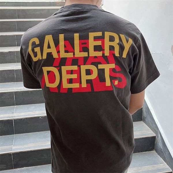 gallerysdepts tees mens t-shits street fashion dept washed old atk rainbow letter mother print loose couple short sleeve tshirt, White;black