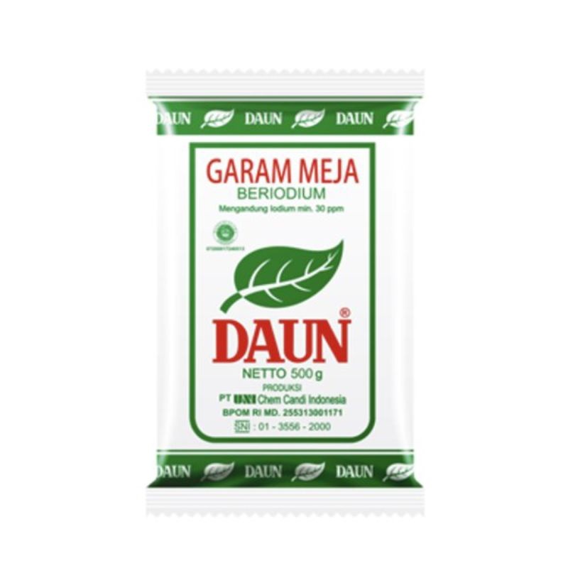 Garam Daun sendiri adalah garam meja / garam dapur yang diproses dengan teknologi pencucian (washing) yang berulang. Washing sendiri adalah proses pencucian untuk menghasilkan garam yang lebih bersih dan higenis. Sehingga Garam Daun memiliki karakteristik garam yang bersih dan putih.