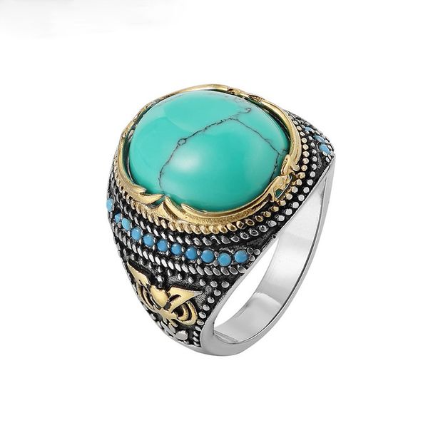 gem turquoise ring men's titanium steel retro punk finger ring jewelry, Silver