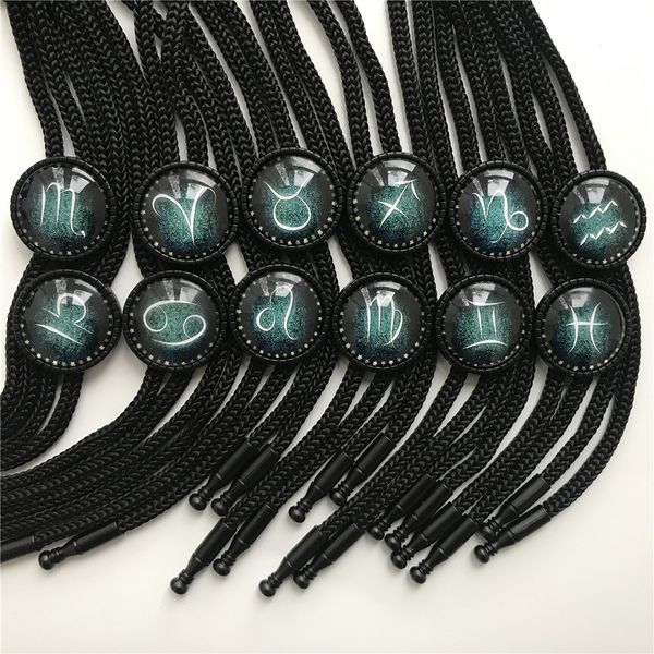 gemini 12 constellation star zodiac sign bolo tie men women fashion jewelry bow ties neck wear office clothing necklace, Black;blue