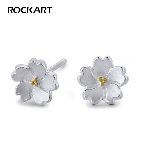genuine 925 sterling silver hand-made romantic cherry blossom stud earrings for women gift fine jewelry allergy free, Golden;silver