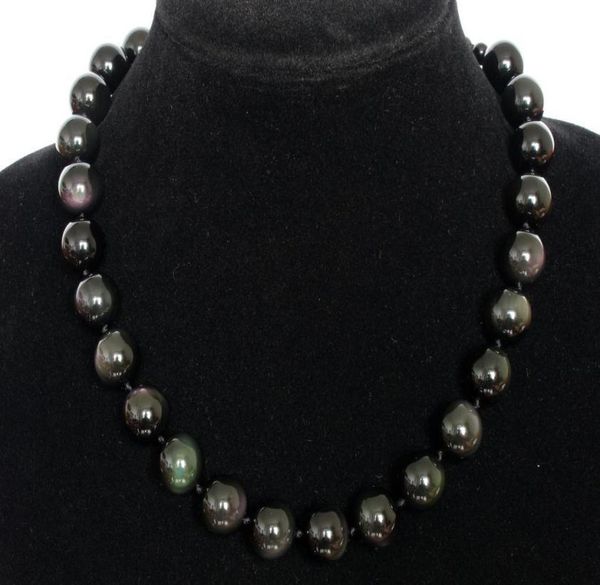 genuine black obsidian 14mm round beads gemstone necklace 186944443, Silver