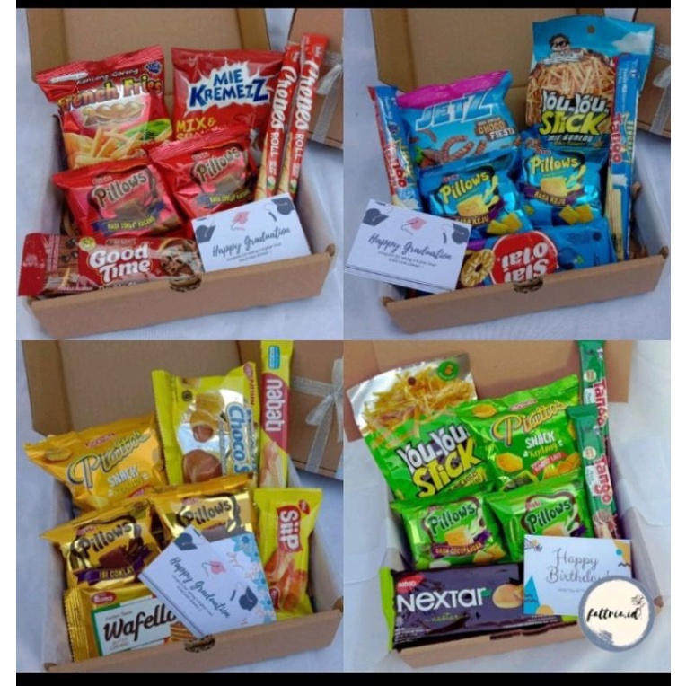 • 5-10 snack sesuai warna (bisa custom dengan beberapa opsi, bisa chat terlebih dahulu)