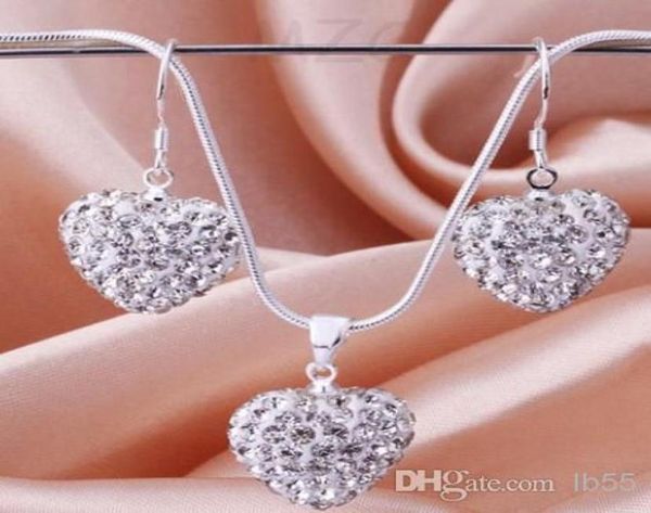 gift heart crystal necklace earring set silver plated jewelry rhinestone disco crystal bead necklace women jewelry gift1909798