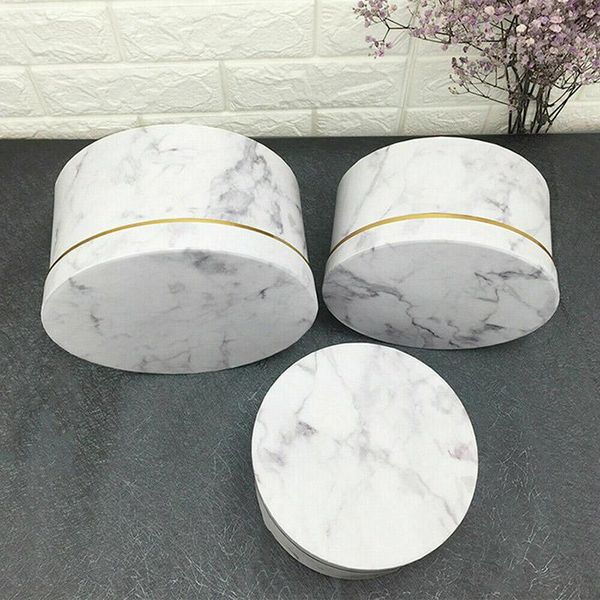 gift wrap 3 pcs florist flowers gifts box marble pattern round packing case for wedding party dtt88