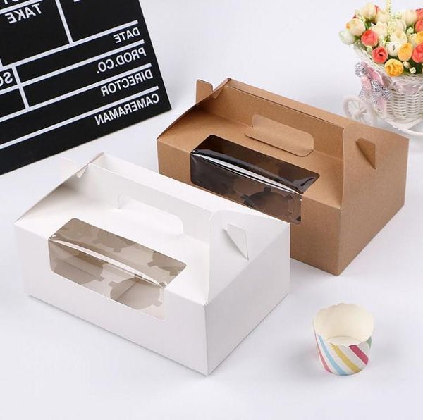 gift wrap 300pcs/lot brown/white 6 cupcake box kraft paper cake boxes and packaging with handle wedding wholesale