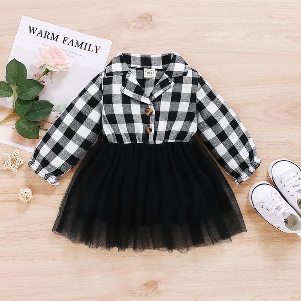 girl's dresses 18 months newborn girl dress long sleeve plaid black tulle baby christmas clothes 1026, Red;yellow