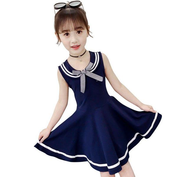 girl's dresses 3-13 years children girls navy school wind style summer dress sleeveless princess kids clothing bow lovely clothes, Red;yellow