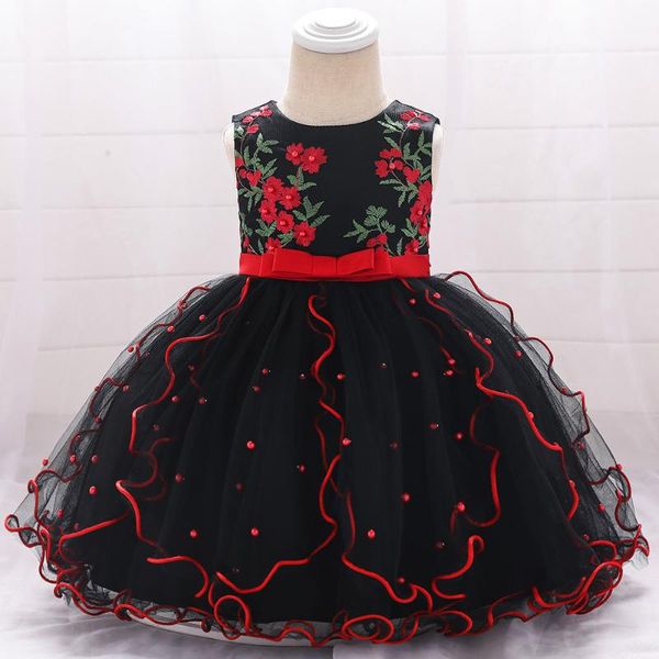 girl's dresses black princess baby girls dress ball gown tutu bead embroidery floral born kid tulle formal prom infant party clothes, Red;yellow