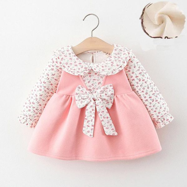girl's dresses little girl floral long sleeve bow plus velvet thicken warm winter princess kids christmas clothing, Red;yellow