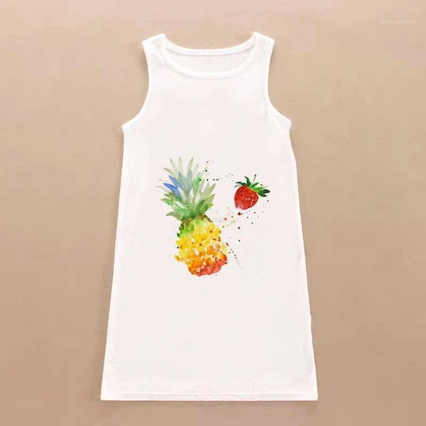 girl's dresses resting painted dress girl summer pineapple fun party girls birthday gift casual skirt white round neck knee-length skir, Red;yellow