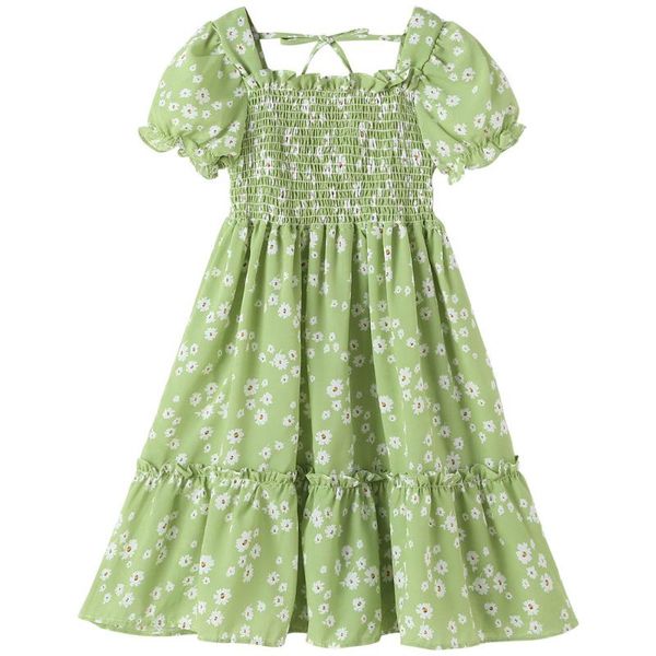 girl's dresses summer for girls floral pattern girls' 2021 est kids dress teenage costumes 3-13 years, Red;yellow