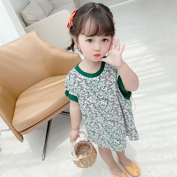 girl's dresses the girl sen department green small flowers medium-long t-shirt skirt summer child rural style 3 bubble sleeve 4 dress, Red;yellow