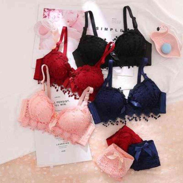 girl bra set large size back button comfortablecting bra breathable thin part without steel ring women underwear sets l220726, Red;black