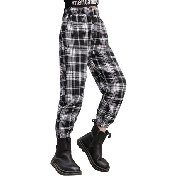 girls cargo pants plaid pattern kids trousers for girls casual style kids pants autumn winter girls clothing 6 8 10 12 14 210303, Blue