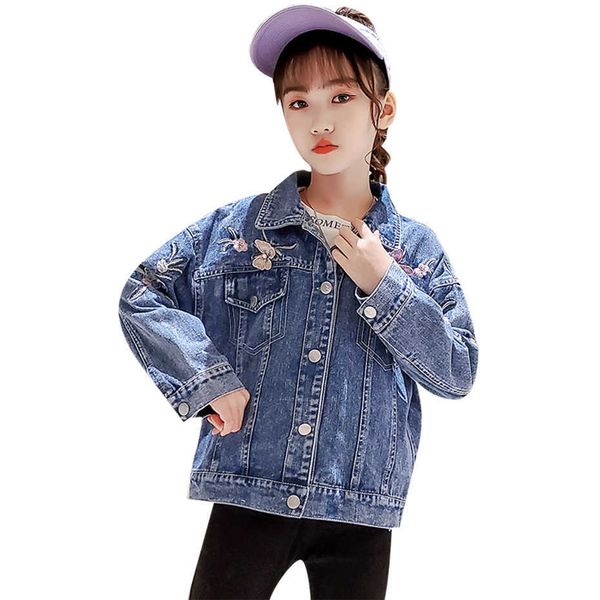 girls denim jacket outerwear floral girl coat embroidery childrens' spring autumn clothes for 6 8 10 12 14 210528, Blue;gray