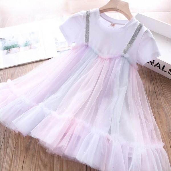girls dress summer baby girls rainbow tulle princess dress kids clothing wholesale, Red;yellow