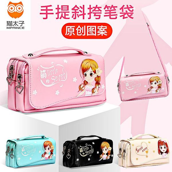 girls pu leather large capacity multi-layer cute cartoon pencil bag stationery case student portable diagonal cross pen gift bags