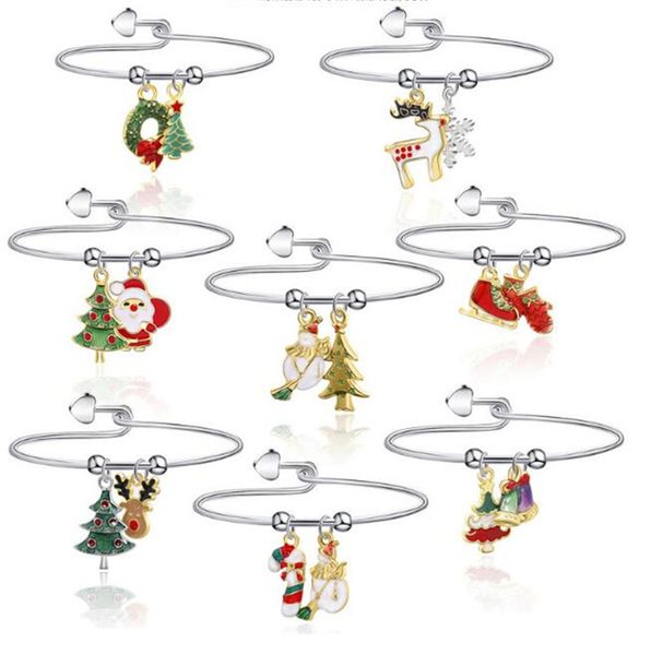 girls women christmas jewelry bracelet santa clause reindeer xmas tree cane pendant bangle wrist bracelets metal ring wristband gift ly11091, Red;brown