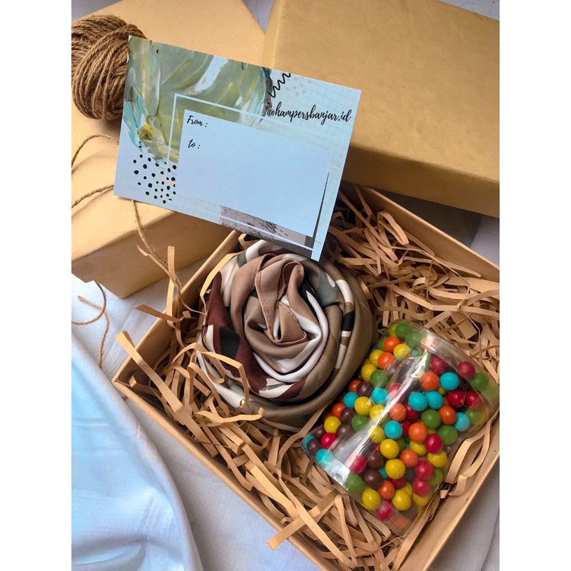 gift box isi hijab + coklat biskuit