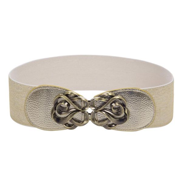 gk женские пояс дамы широкая металлическая пряжка растягивающая эластичная талия пояс пояса металлический цветочный вскользь, Black;brown