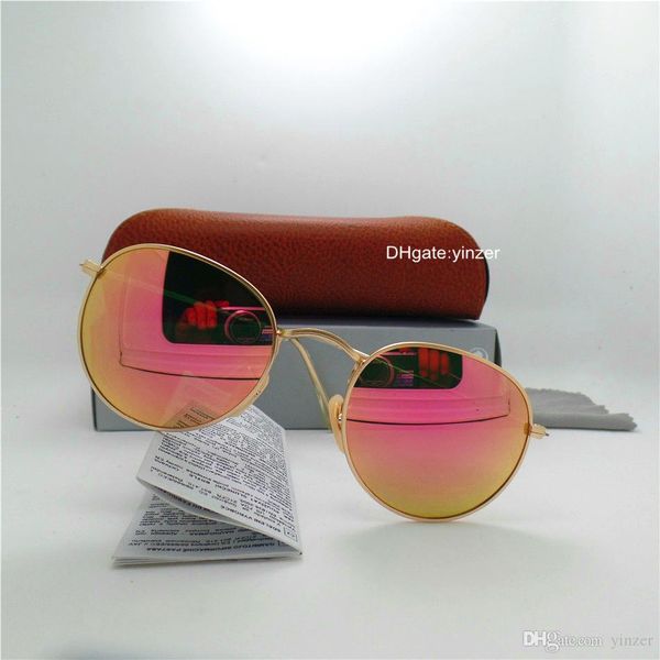 glass lens round classic sunglasses men women brand designer circle uv400 mirror 51mm outdoor oval metal sun glasses brown case box, White;black