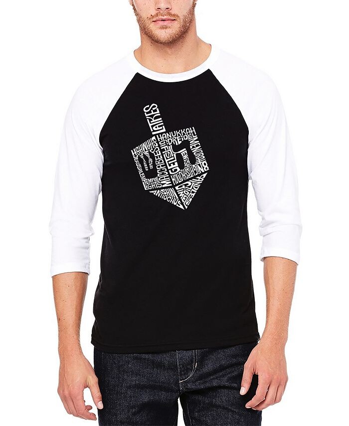 Мужская бейсбольная футболка Hanukkah Dreidel Raglan Word Art LA Pop Art, черный
