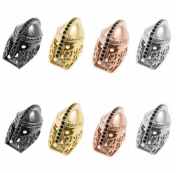 gold metal knight helmet space beads for jewelry diy bracelet making fashion brass micro pave crystal geometry alloy black cz rhinestone acc