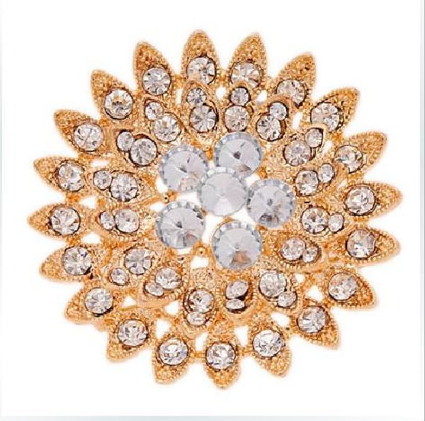 gold plated clear rhinestone crystal sun flower sparkly diamante brooch, Gray