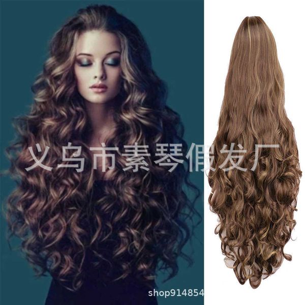 golden curly high temperature silk wig mixed with brown long hair, Black