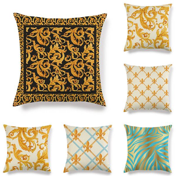 golden geometric flower design linen/cotton throw pillow covers couch cushion cover home decorative pillow covers