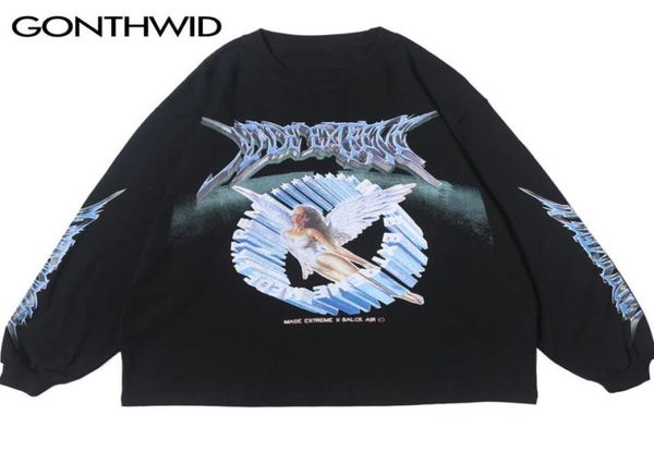gonthwid creative 3d angel print long sleeve tees shirts streetwear hip hop hipster casual loose tshirts men fashion mx2005089585990, White;black