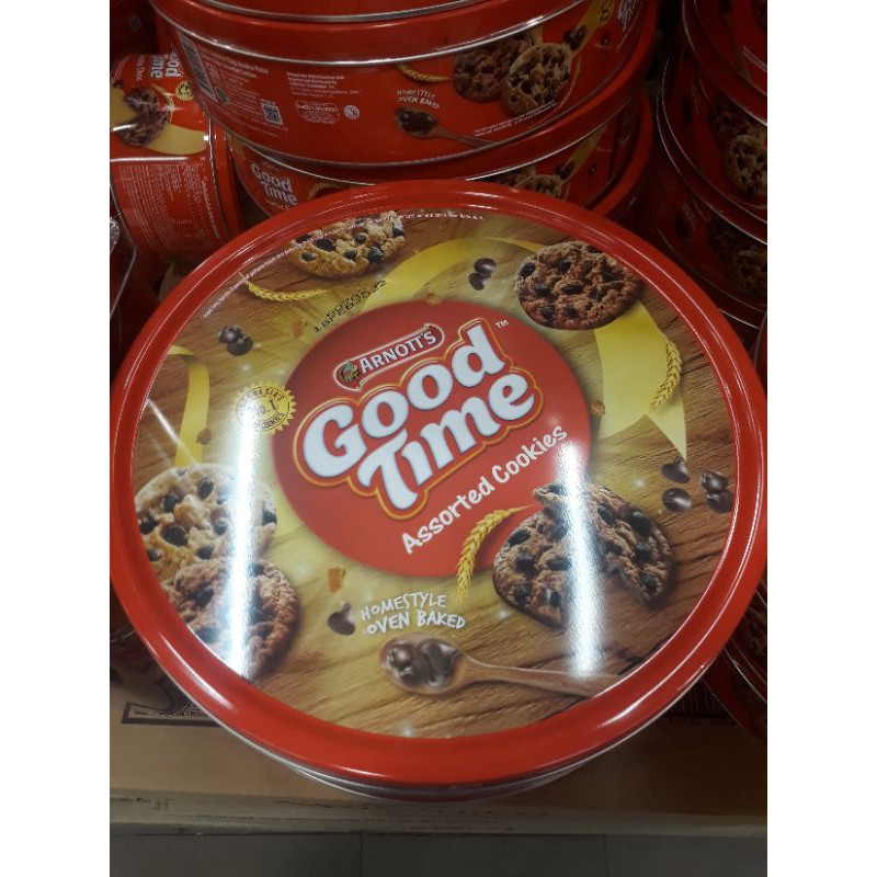 asorted cookies Goodtime 300gram. coklat. berbagi emang asik. yg 300gram berat biskuitnya, dengan kalengnya berat menjadi 800gram . gudlak