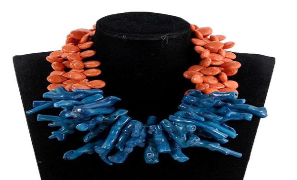 gorgeous orange and teal blue baroque coral necklace fashion african wedding beads party necklace bridal jewelry 2020 cnr0376386972, Silver