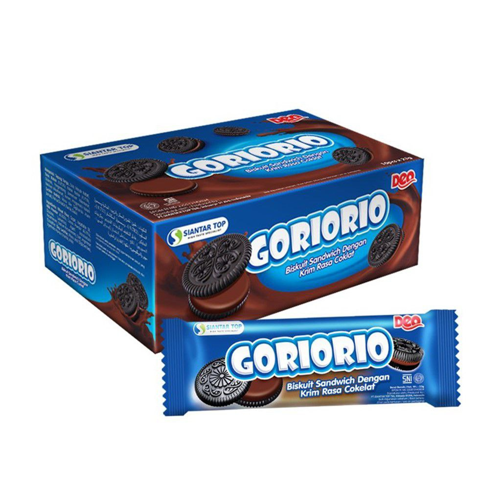 goriorio 500an makanan ringan rasa coklat yang ada crem susunya yang sangat lezat dan enak,
