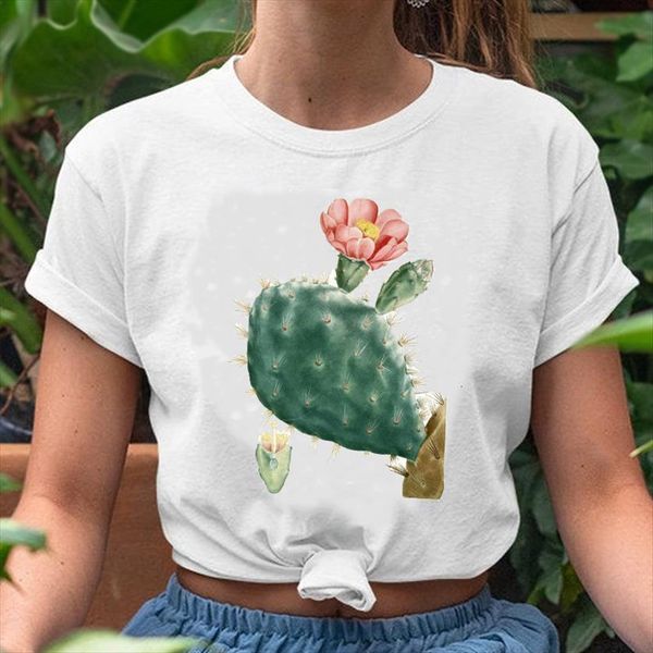 graphic cactus fashion plant women t shirt trend floral flower 90s spring summer print female lady clothes tees, White