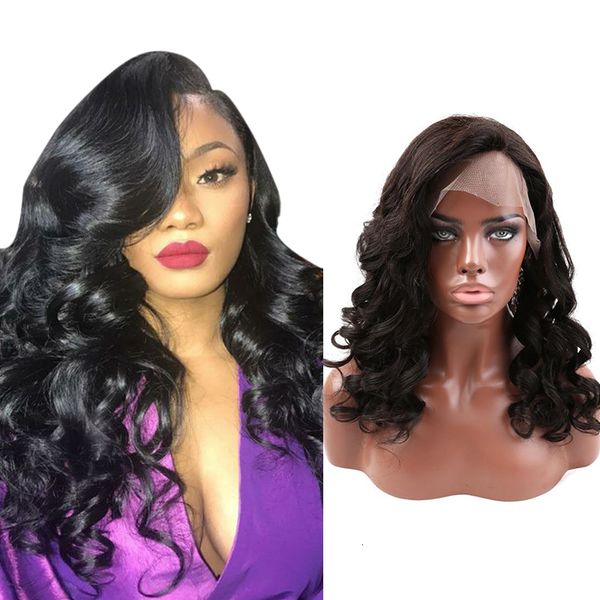 greatremy® natural hairline brazilian indian glueless full loose wave virgin human hair lace front wig for black women, Black;brown
