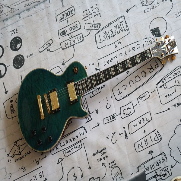 green body high-end pickup, shell inlaid fingerboard metal guitar, travel guitar