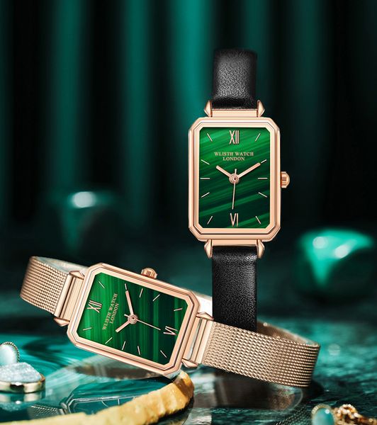 green malachite watch rectangle japan quartz movement slim ladies stainless steel mesh waterproof watches for women, Slivery;brown