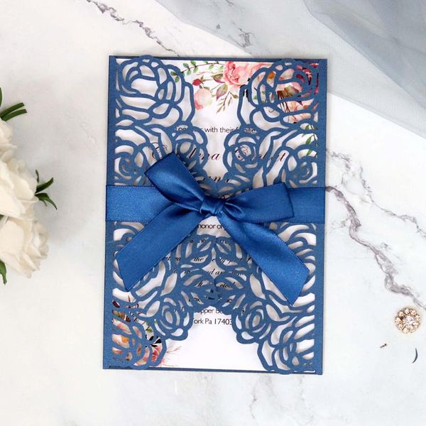 greeting cards 10pcs/lot european high-end white wedding invitation card laser cut floral glittering engagement baptism party supplies