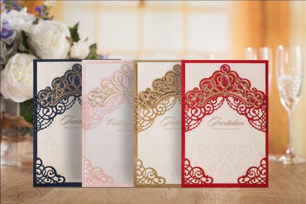 greeting cards wishmade custom printed embossed pink laser cut wedding card paper invitation 50pcs/lot anniversary cw6072