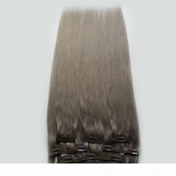 grey clip in human hair extensions straight 100g 7pcs, Black;brown
