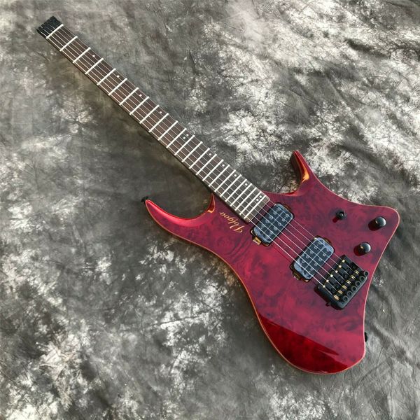 grote red headless electric guitar 6 strings solid wood mini guitar